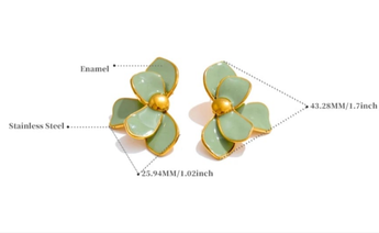 Enamel flower gold earrings. Available in pink, green or beige.