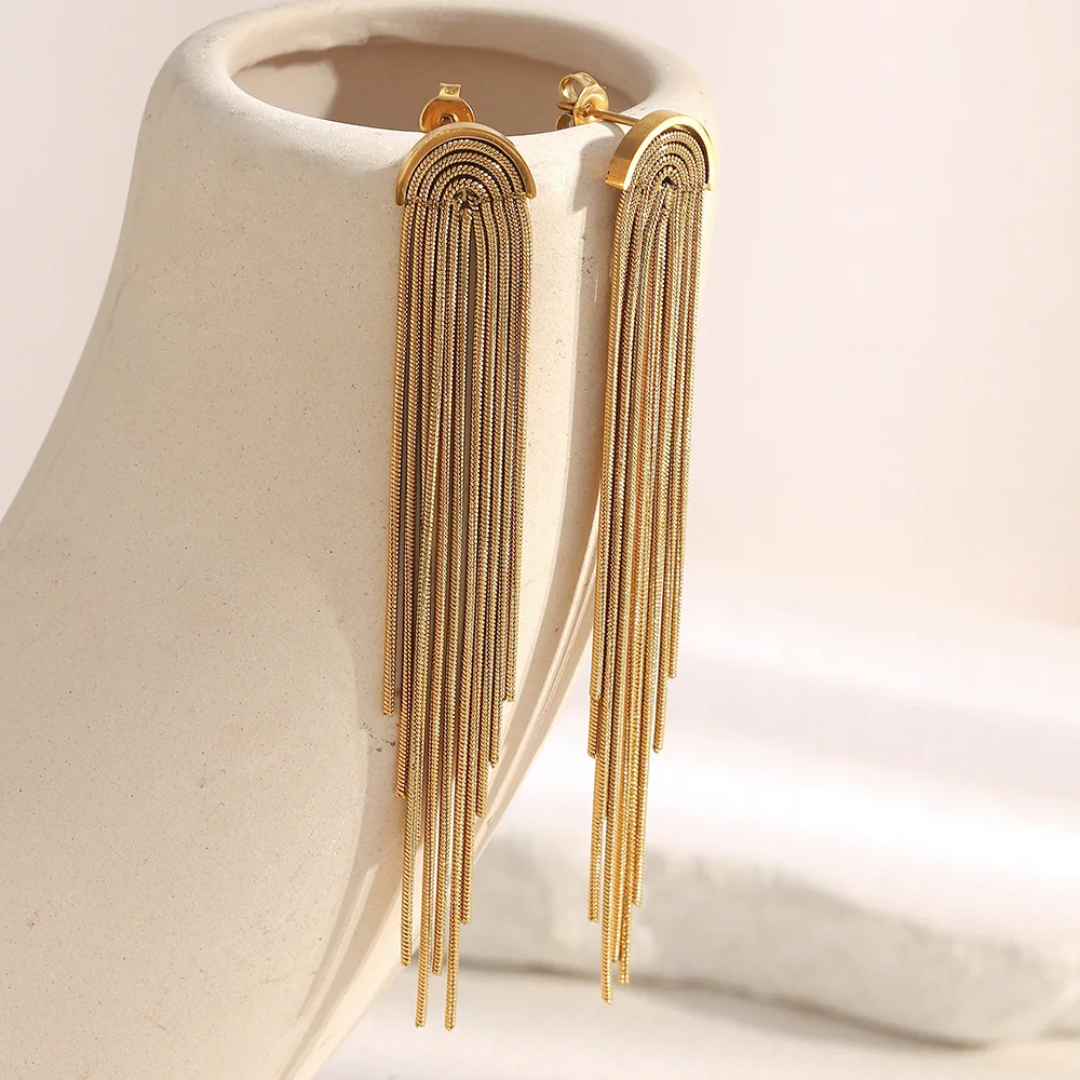 Waterfall Gold Tassel Earrings