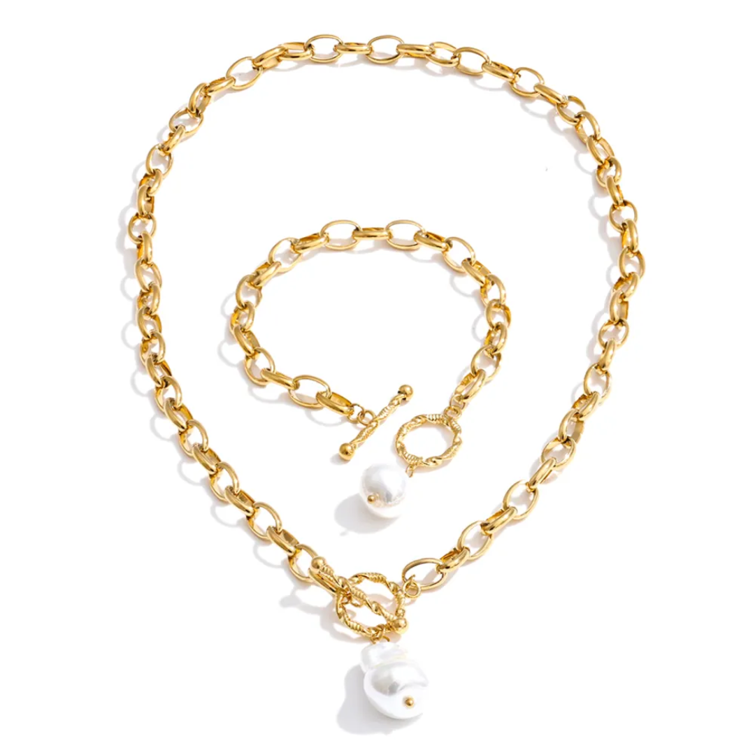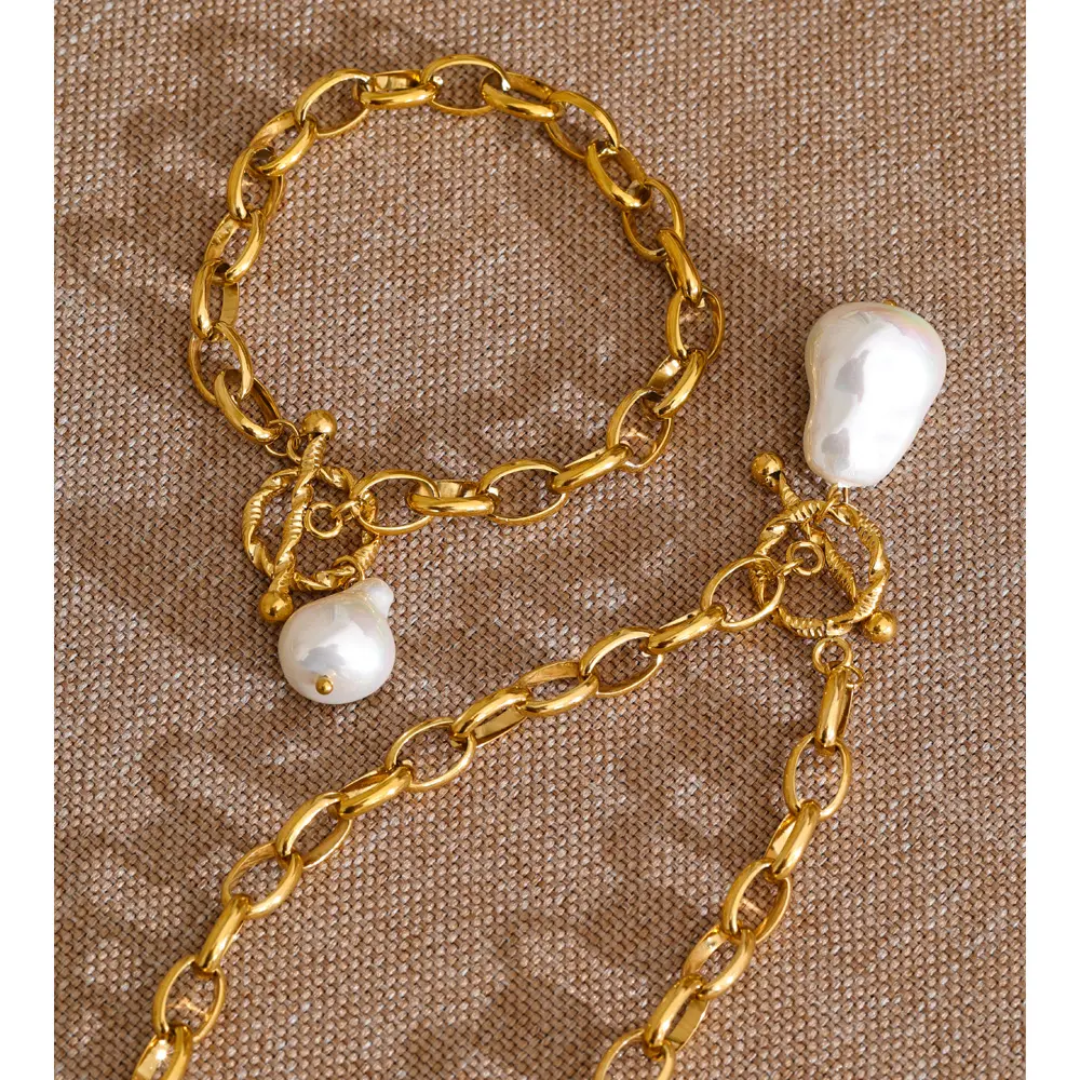 Pippa Pearl Pendant Necklace or Bracelet with T Bar Fastening - Gold