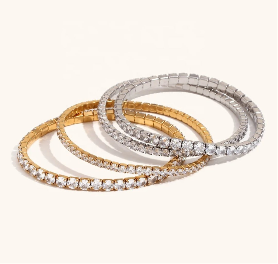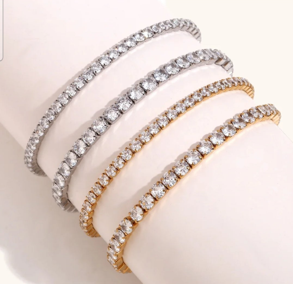 Stretch CZ tennis bracelet. Available in gold or silver.